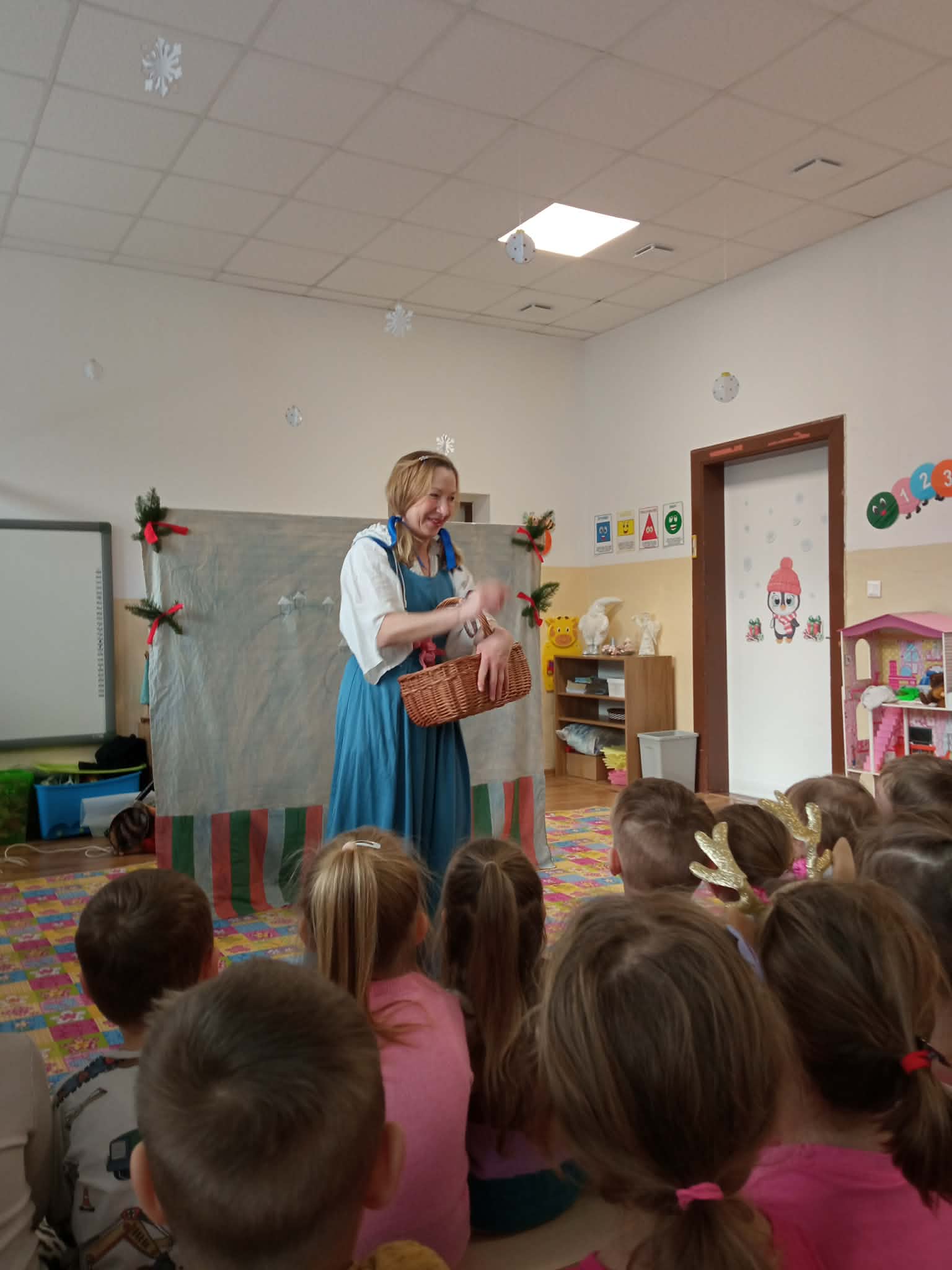 Navštívilo nás bábkové predstavenie, ktoré vytvára príjemnú vianočnú atmosféru, so všetkým čo k tomuto obdobiu patrí - pokoj, nádej, lásku, ale aj humor, veselosť a za štipku tajomstva a kúziel. Vychádzajúc z ľudových tradícií, povier, ako aj samotného spôsobu života ľudí na Slovensku sa na chvíľku prenesieme do čias