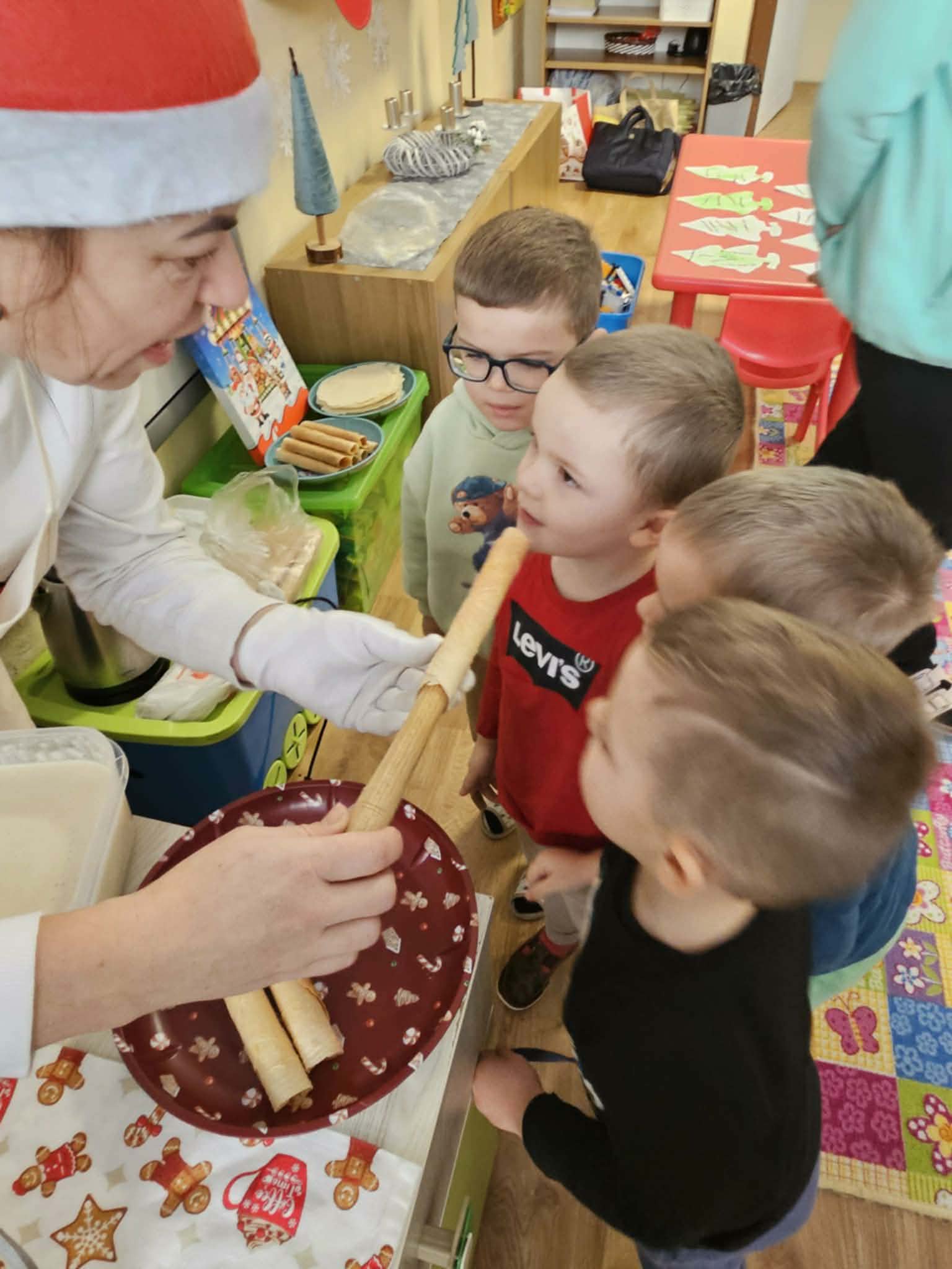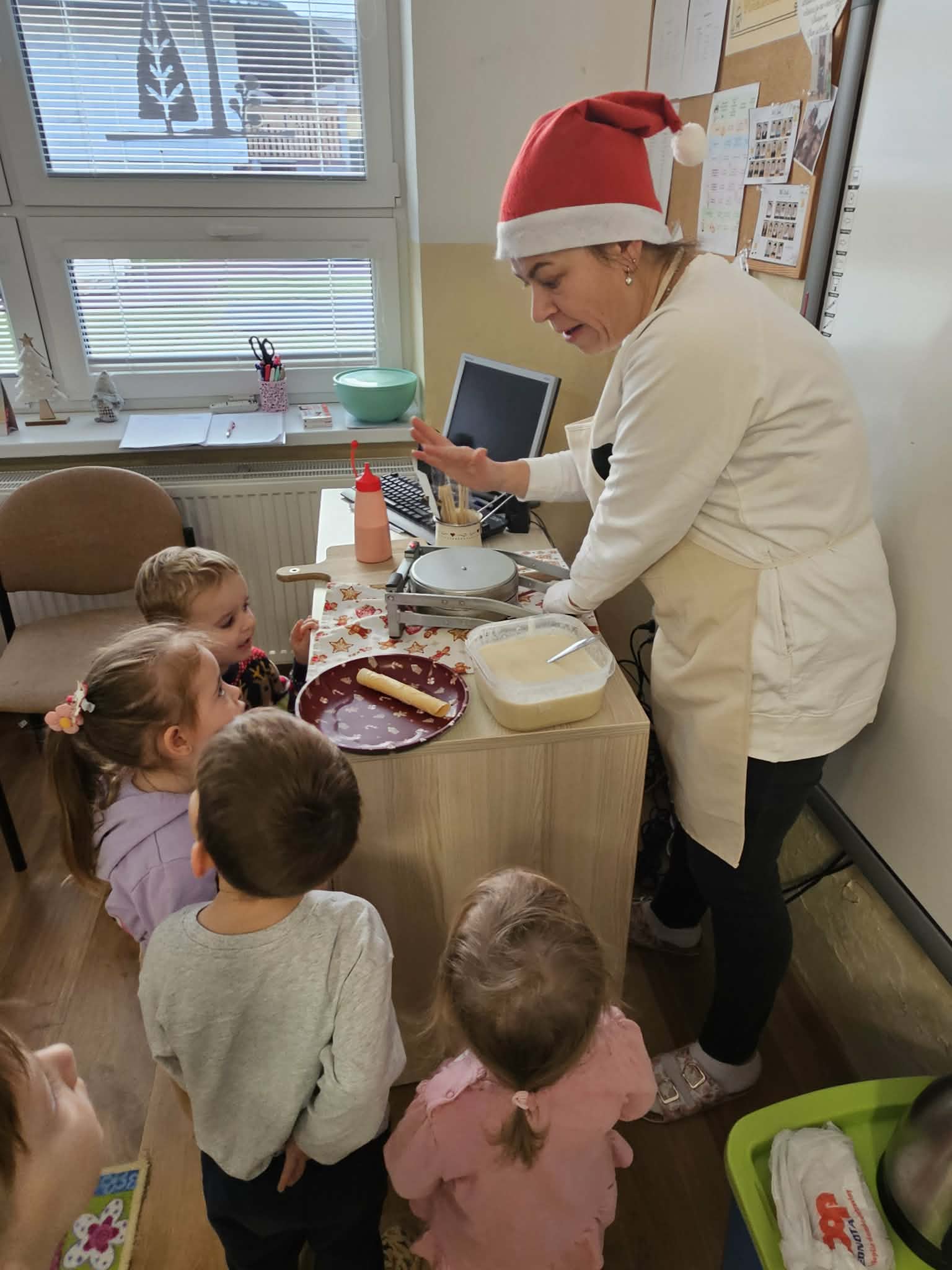 Pani Anička Krištofíková nás navštívili v materskej škole. Deťom priblížili a ukázala techniku pečenia vianočných oplátkou. Deťom sme porozprávali o zvykoch a tradíciách na dedine. Najviac sa však tešili na ochutnávku čerstvých upečených oplátkou.