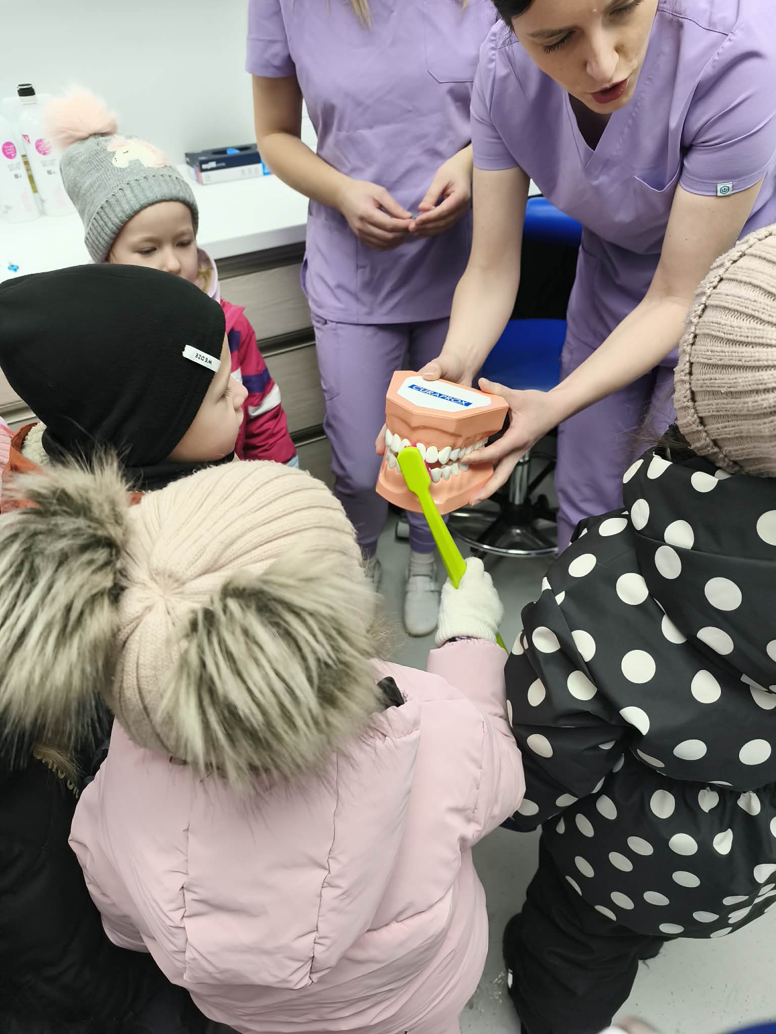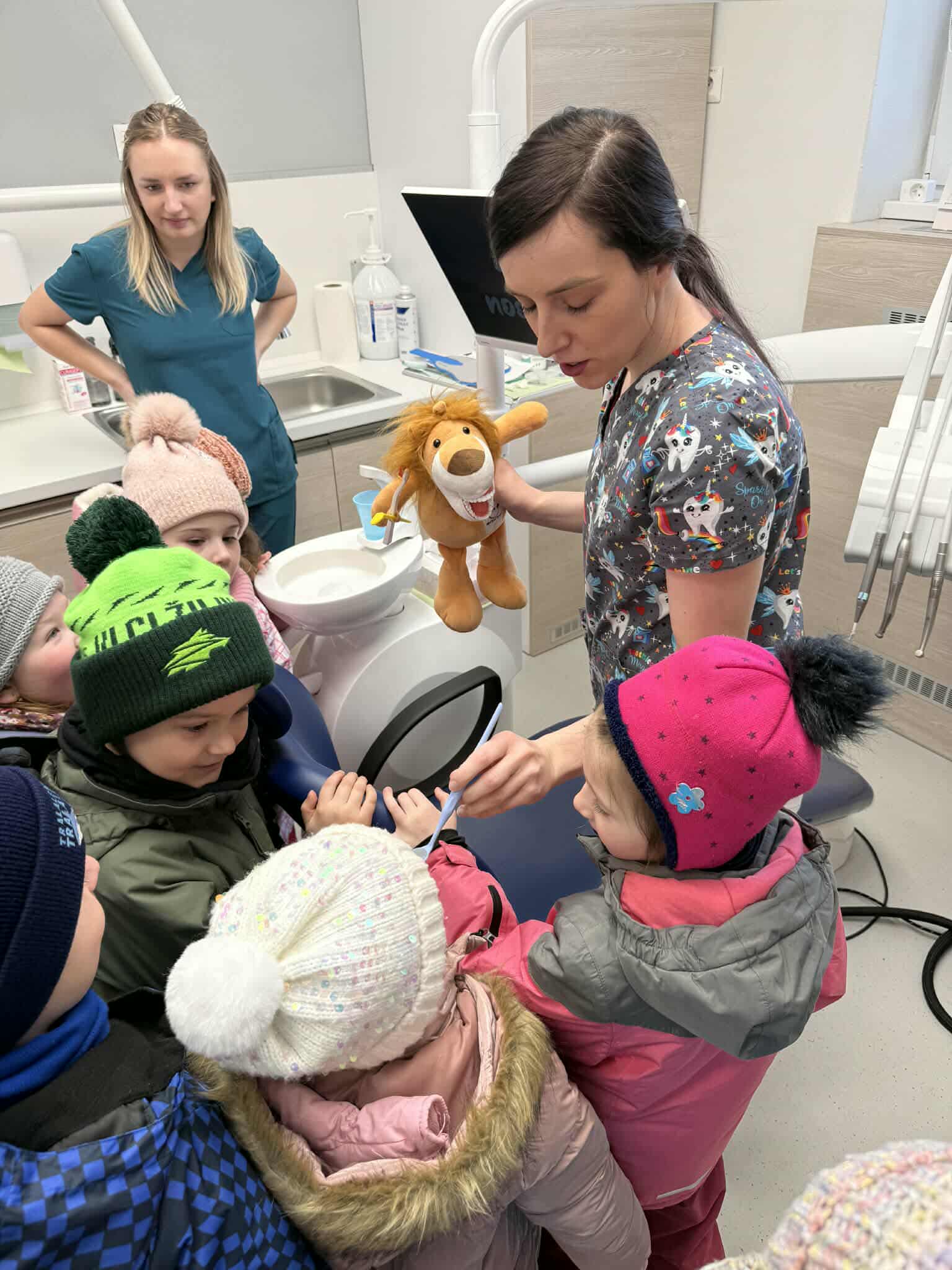 Dňa 16.02. a 20.02.2026 sme spoločne s deťmi navštívili v rámci témy týždňa Ľudské telo dentálnu hygieničku pani Bc. Ivana Oravíkovú v zubnej ambulancií Kondental v Belej. Ukázala deťom ako sa o zúbky starať, čo im škodí, čo máme a nemáme jesť, aby sa nám nepokazili. Deti si vyskúšali kreslo, vyčistiť kamarátovi Levíkovi zúbky a mnoho iného. Porozprávali o návšteve u zubára, o svojich skúsenostiach a sľúbili, že si budú zúbky dôkladne umývať. Tak dúfajme, že to tak bude.