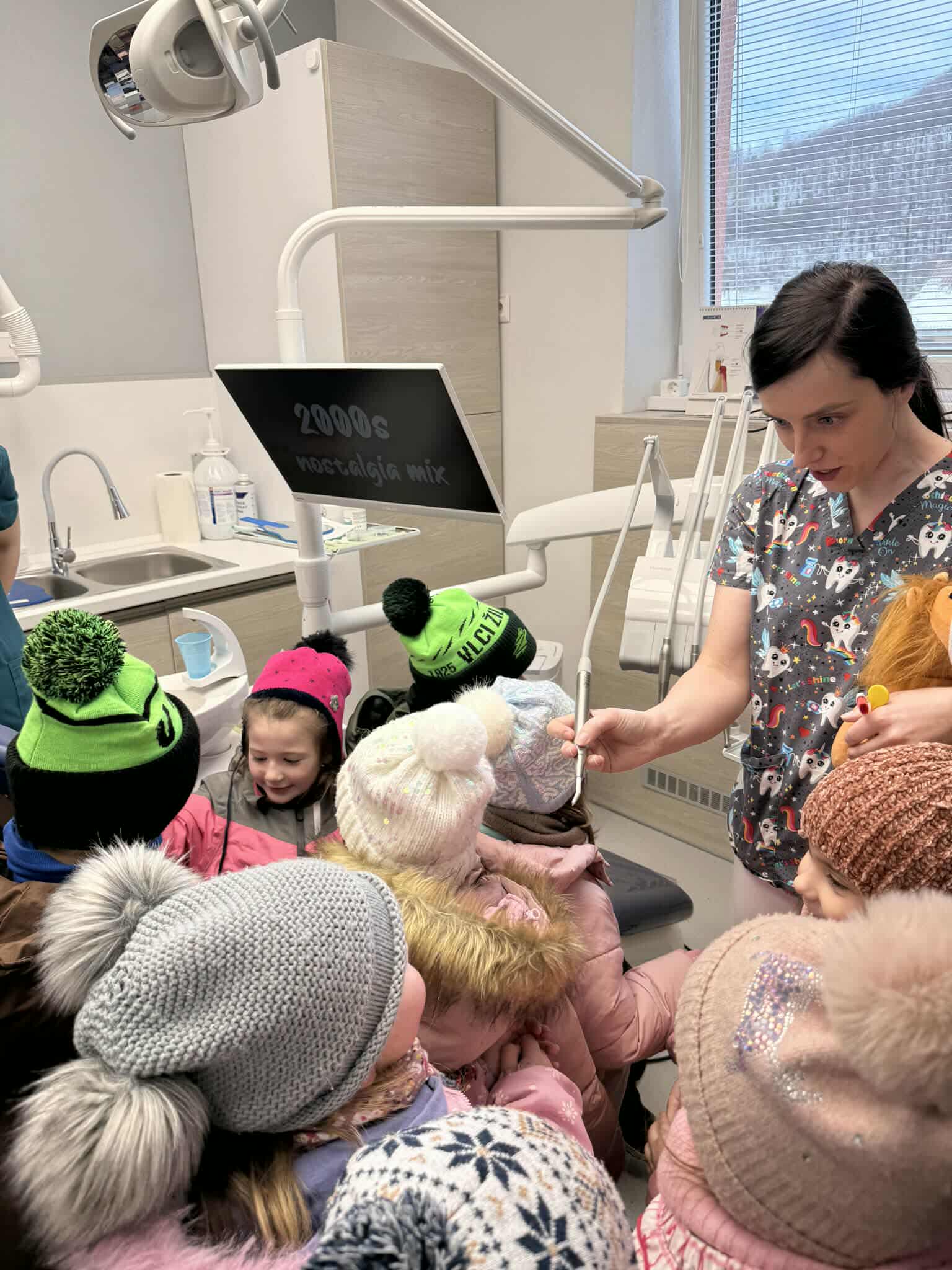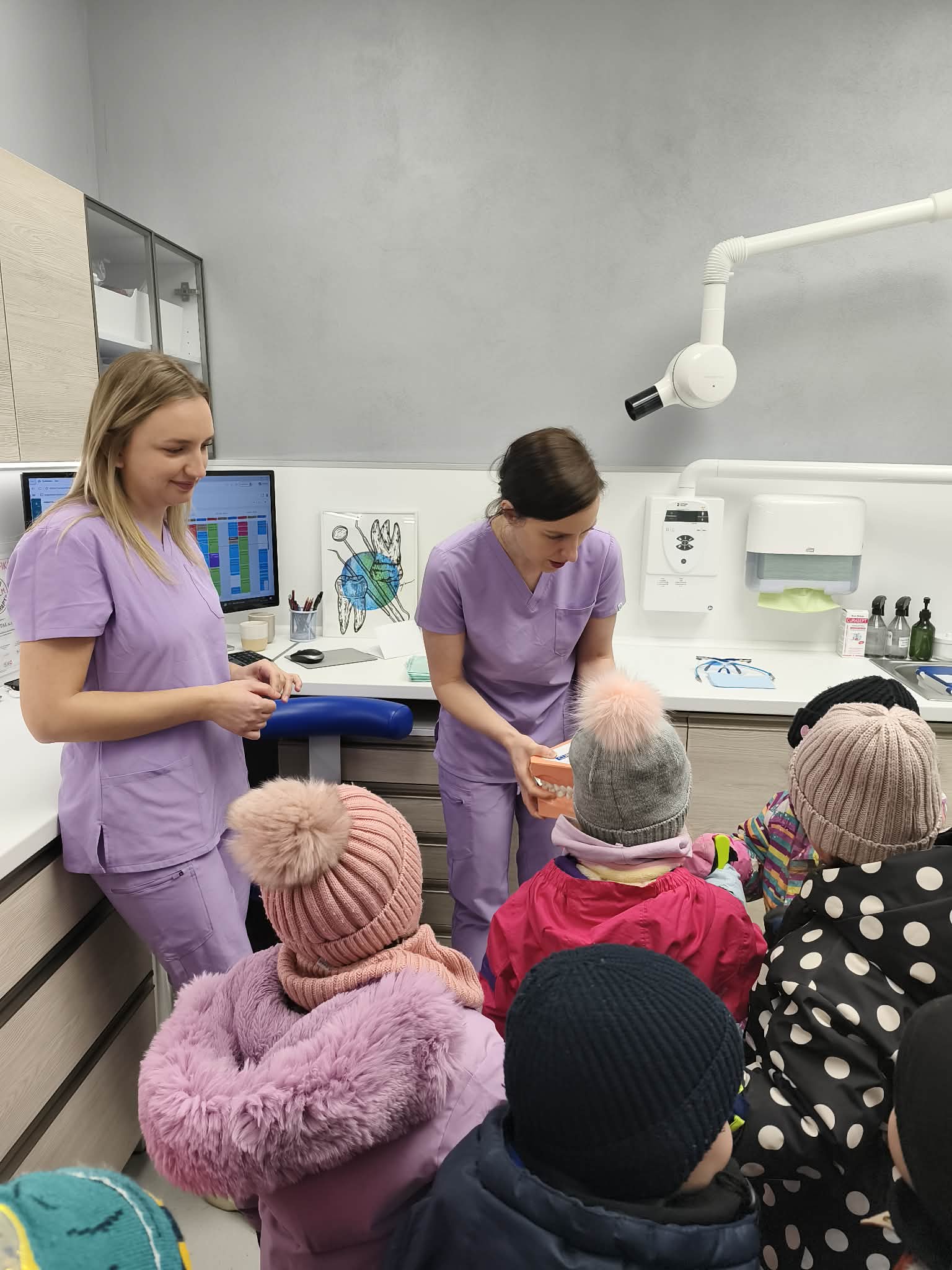 Dňa 16.02. a 20.02.2026 sme spoločne s deťmi navštívili v rámci témy týždňa Ľudské telo dentálnu hygieničku pani Bc. Ivana Oravíkovú v zubnej ambulancií Kondental v Belej. Ukázala deťom ako sa o zúbky starať, čo im škodí, čo máme a nemáme jesť, aby sa nám nepokazili. Deti si vyskúšali kreslo, vyčistiť kamarátovi Levíkovi zúbky a mnoho iného. Porozprávali o návšteve u zubára, o svojich skúsenostiach a sľúbili, že si budú zúbky dôkladne umývať. Tak dúfajme, že to tak bude.